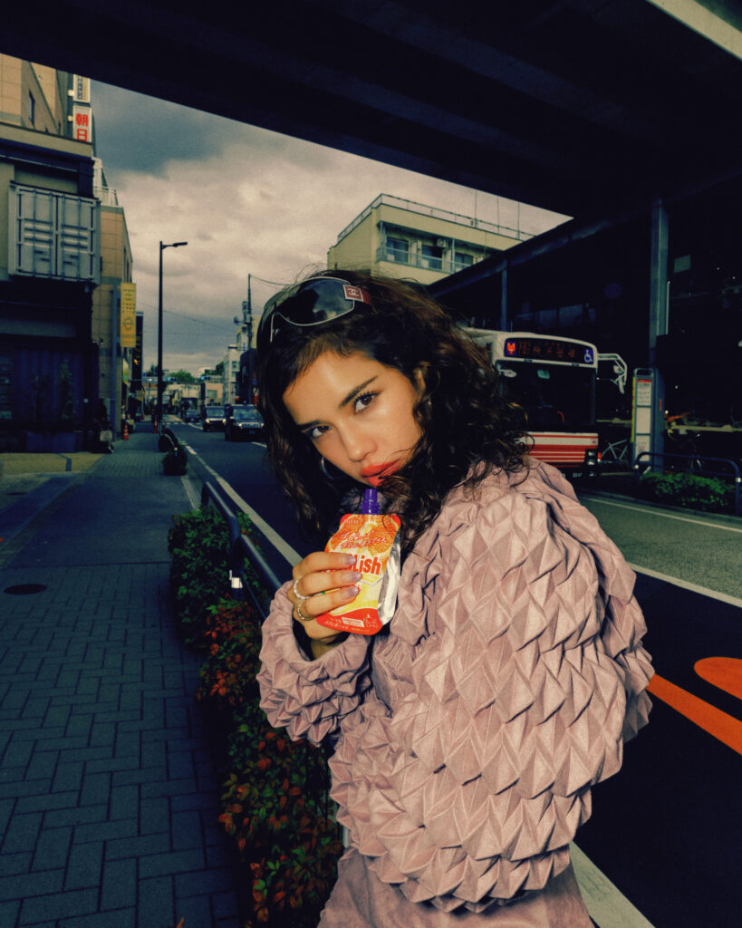 Hard flash turns steel shutters and highway pillars into a live set. Nothing romantic. Nothing softened. Fabric against concrete, skin against light, silhouette against traffic. The city becomes a testing ground for proportion and posture. Every frame is a collision between polish and pressure.